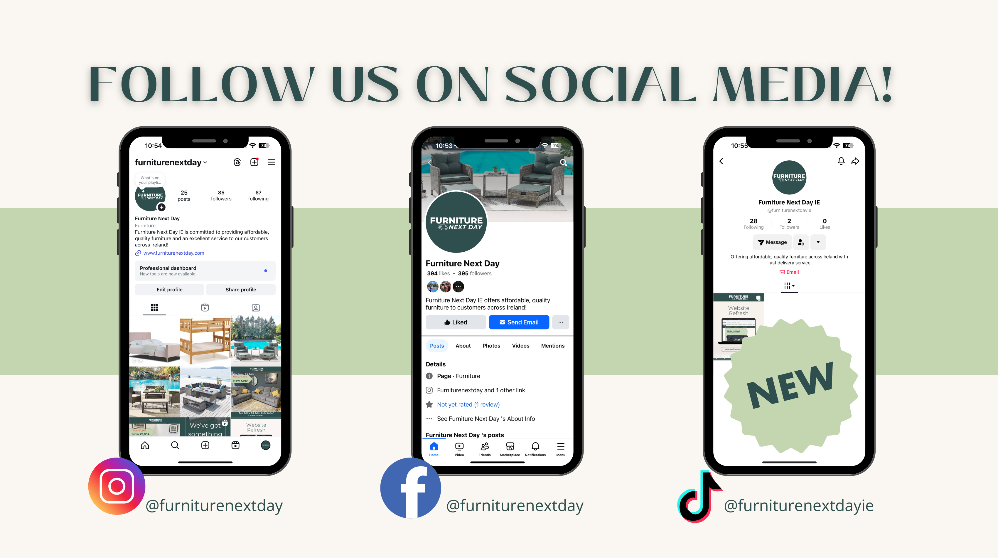 Furniture Next Day promise an exciting selection of furniture delivered to your home. Delivery available throughout Ireland. Our products are stocked in Ireland and are dispatched next day.