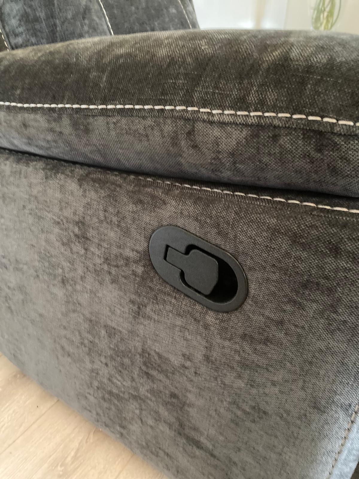 The sophisticated and contemporary Lucy reclining sofa boasts a high back in a soft charcoal grey fabric with white stitch detailing. The 3 Seater comes with a drop down table offering two cup holders and a wireless charging pad for your mobile phone. It is a incredible addition to any living space offering both comfort and practicality.