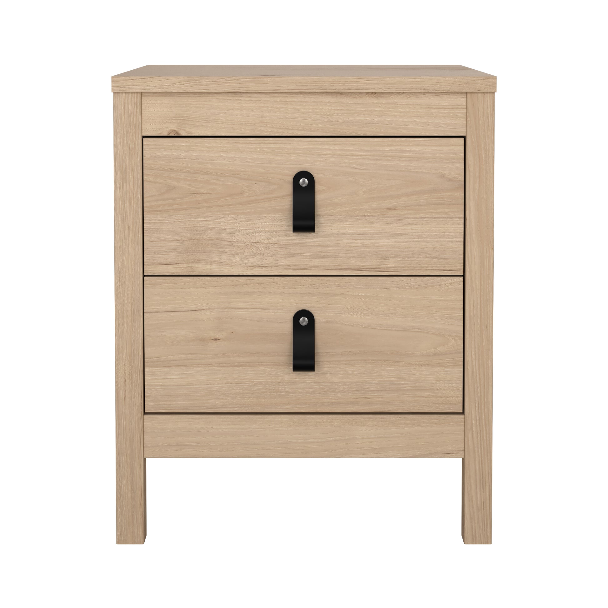 The Madrid Nightstand is sleek and contemporary, Featuring two drawers for storage. With elevated legs that make cleaning underneath easy. The Product comes with a choice of two handles, a leather strap or metal handle. Both variations can be seen in images.